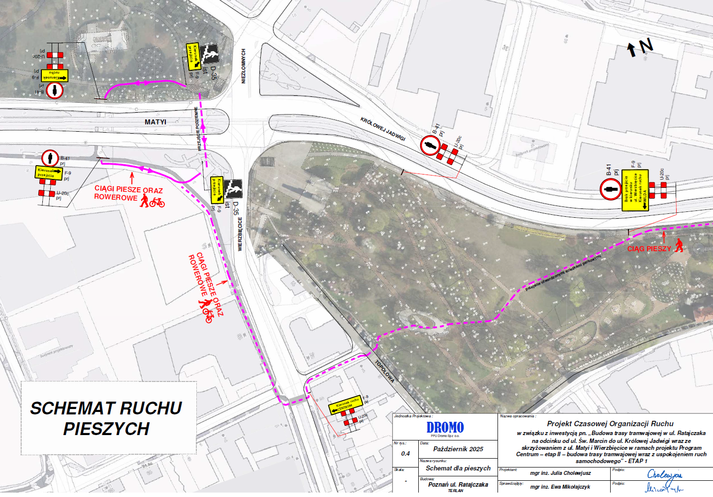 Budowa tramwaju na Ratajczaka - ruch pieszy i rowerowy w rejonie parków