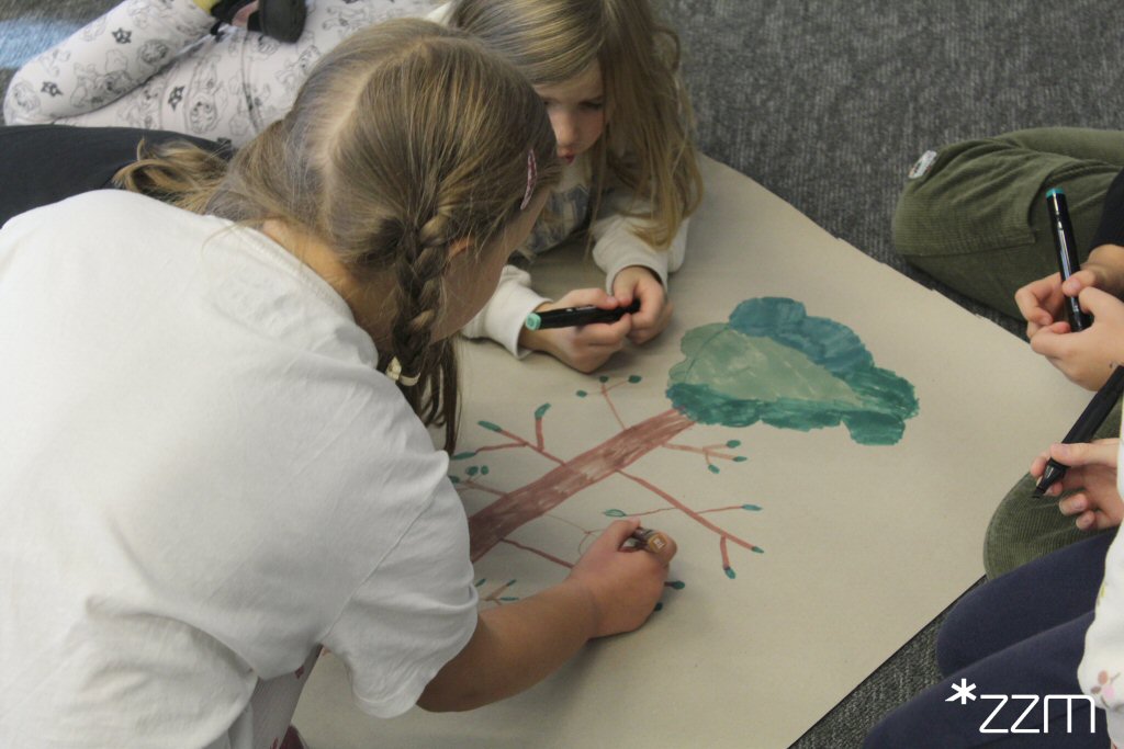 Dzieci poznały różne gatunki drzew, a na zakończenie wykonały własne magnesy z mieszkańcem drzewa.