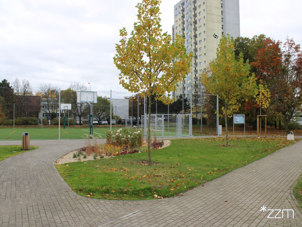 Ponadto obok boiska pojawiły się ławki, stojaki na rowery i inne elementy małej architektury, jak chociażby stoliki i ławki łukowe. Całość dopełniły nasadzenia nowych drzew.