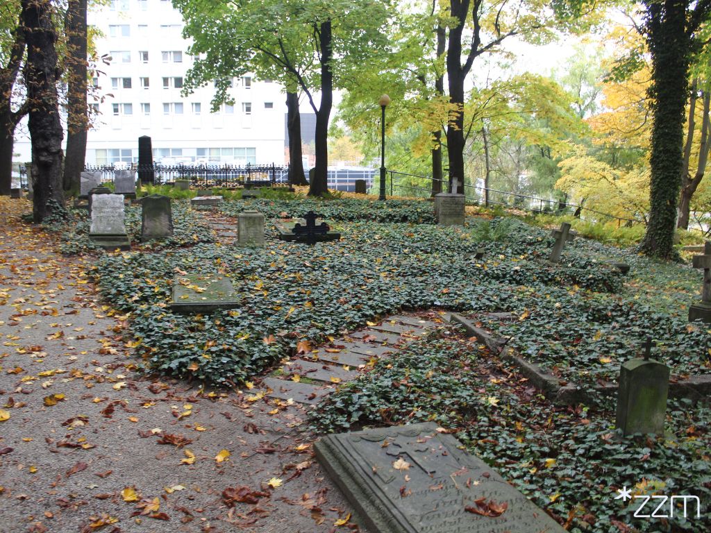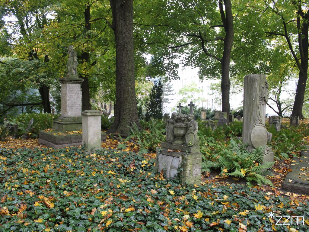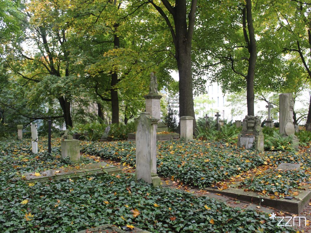 Równie interesujące jest runo cmentarne, tworzone przez rośliny okrywowe, niskie i rozrastające się przy ziemi. Oprócz bluszczu występują tu cebulice, gajowiec, barwinek, bodziszek, paprocie, runianka i hosty. Rośliny te tworzą zieloną, poziomą płaszczyznę, harmonijnie współgrającą z formami rzeźb. Wczesną wiosną teren zdobią liczne przebiśniegi, a nieco później pojawiają się jasnoniebieskie kobierce cebulicy.