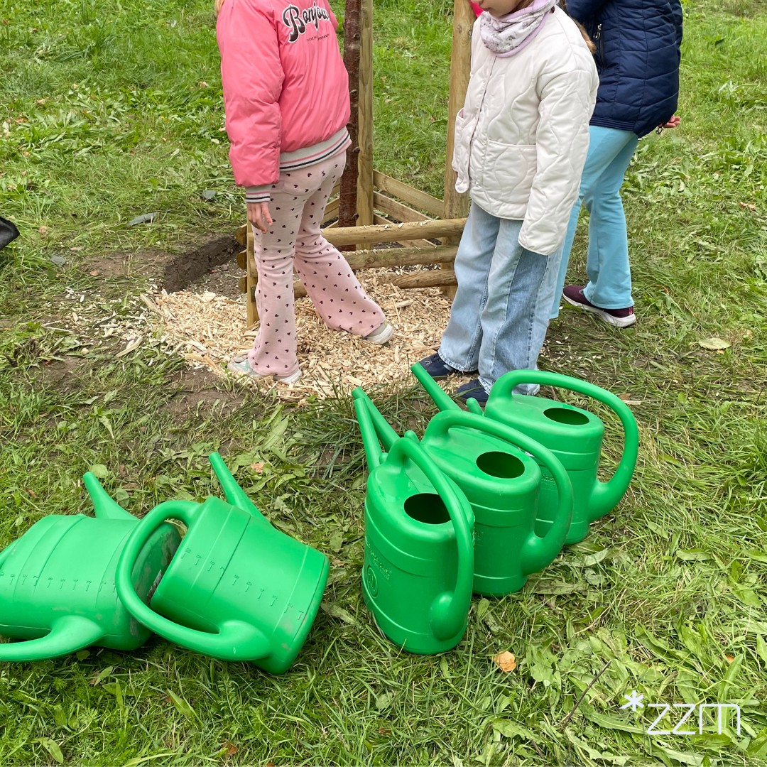 Dzieci podlewający posadzone drzewo - grafika artykułu